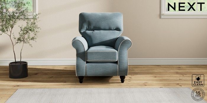 7.3.1 Buy Ashford Highback Small Armchair Fine Chenille with Contrast Mid Blue and Oyster Low Turned - Dark from the Next UK online shop Click here to use our accessible website