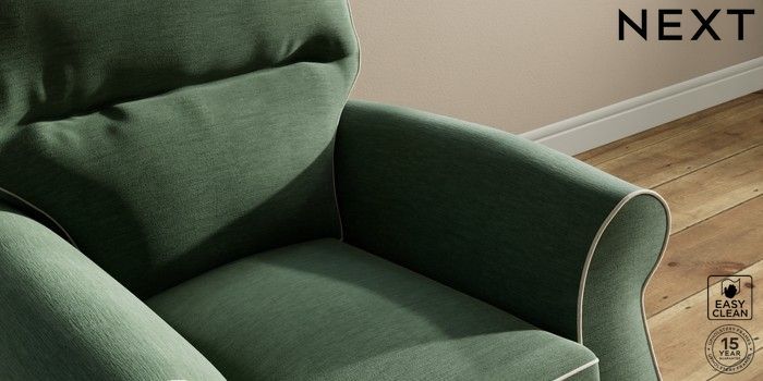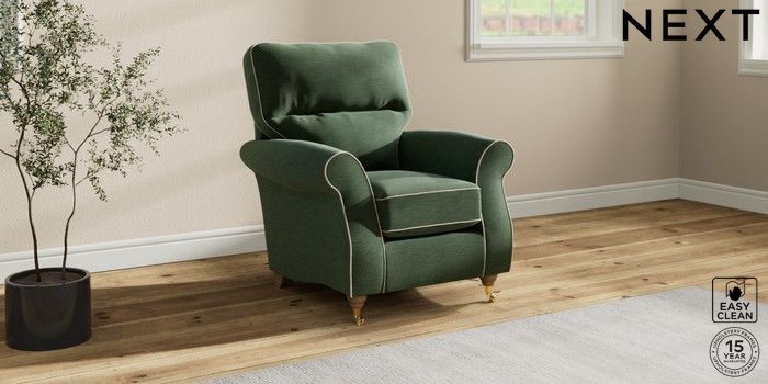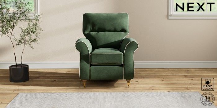 7.3.1 Buy Ashford Highback Small Armchair Fine Chenille with Contrast Mid Khaki Green and Oyster Castor - Light from the Next UK online shop Click here to use our accessible website