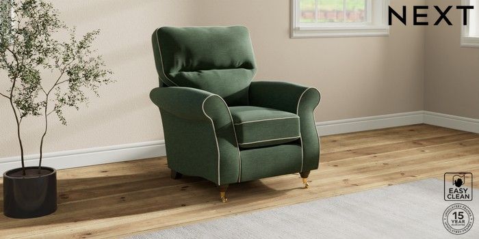 7.3.1 Buy Ashford Highback Small Armchair Fine Chenille with Contrast Mid Khaki Green and Oyster Castor - Mid from the Next UK online shop Click here to use our accessible website