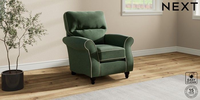 7.3.1 Buy Ashford Highback Small Armchair Fine Chenille with Contrast Mid Khaki Green and Oyster Low Turned - Dark from the Next UK online shop Click here to use our accessible website