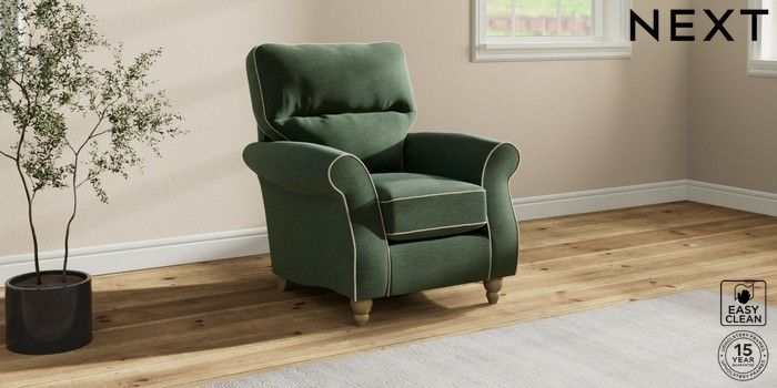 7.3.1 Buy Ashford Highback Small Armchair Fine Chenille with Contrast Mid Khaki Green and Oyster Low Turned - Light from the Next UK online shop Click here to use our accessible website