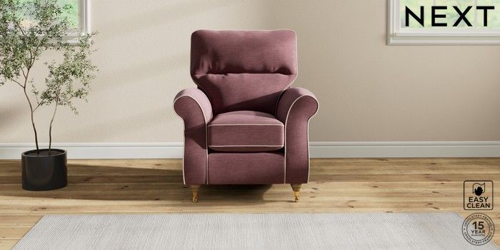 7.3.1 Buy Ashford Highback Small Armchair Fine Chenille with Contrast Mid Mulberry Purple and Oyster Castor - Light from the Next UK online shop Click here to use our accessible website
