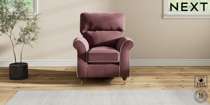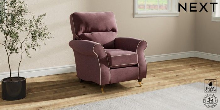 7.3.1 Buy Ashford Highback Small Armchair Fine Chenille with Contrast Mid Mulberry Purple and Oyster Castor - Mid from the Next UK online shop Click here to use our accessible website
