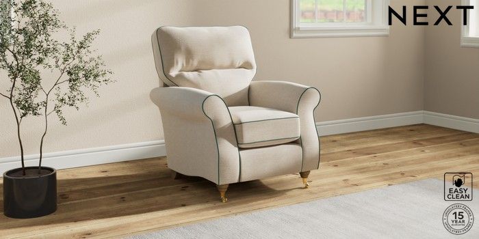 7.3.1 Buy Ashford Highback Small Armchair Fine Chenille with Contrast Oyster and Dark Juniper Green Castor - Light from the Next UK online shop Click here to use our accessible website