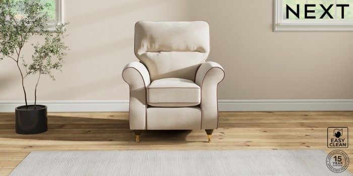 7.3.1 Buy Ashford Highback Small Armchair Fine Chenille with Contrast Oyster and Mid Mulberry Purple Castor - Mid from the Next UK online shop Click here to use our accessible website