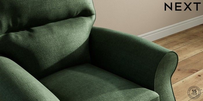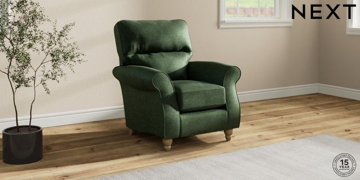 6.12.1 Buy Ashford Highback Small Armchair Luxe Chenille Dark Green Low Turned - Light from the Next UK online shop Click here to use our accessible website
