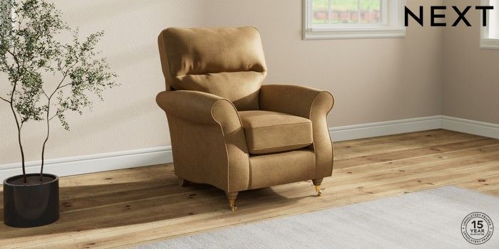 6.12.1 Buy Ashford Highback Small Armchair Luxe Chenille Honey Yellow Castor - Light from the Next UK online shop Click here to use our accessible website
