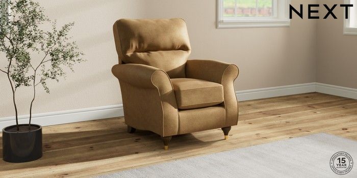 6.12.1 Buy Ashford Highback Small Armchair Luxe Chenille Honey Yellow Modern Turned Metal Cap - Mid from the Next UK online shop Click here to use our accessible website