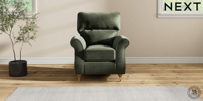 6.12.1 Buy Ashford Highback Small Armchair Luxe Chenille Mid Green Castor - Light from the Next UK online shop Click here to use our accessible website