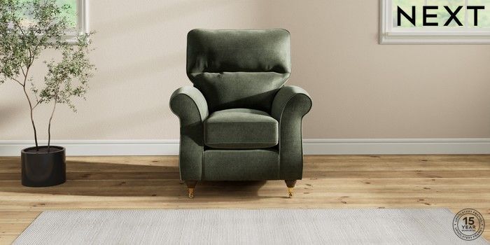 6.12.1 Buy Ashford Highback Small Armchair Luxe Chenille Mid Green Castor - Mid from the Next UK online shop Click here to use our accessible website