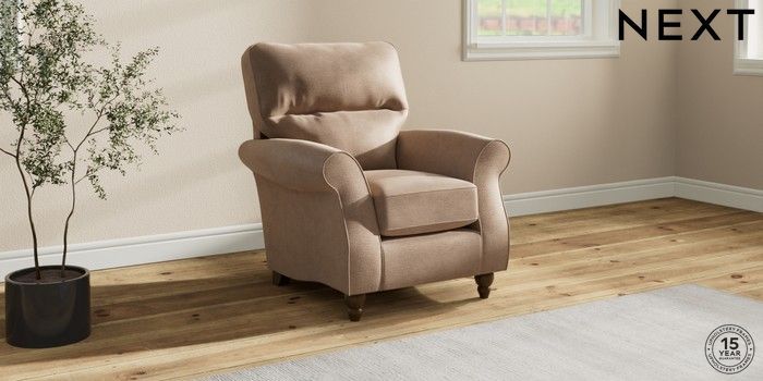 6.12.1 Buy Ashford Highback Small Armchair Luxe Chenille Mid Natural Low Turned - Mid from the Next UK online shop Click here to use our accessible website