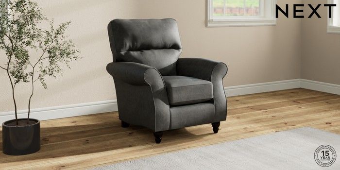 6.12.1 Buy Ashford Highback Small Armchair Monza Faux Leather Easy Clean Dark Grey Low Turned - Dark from the Next UK online shop Click here to use our accessible website