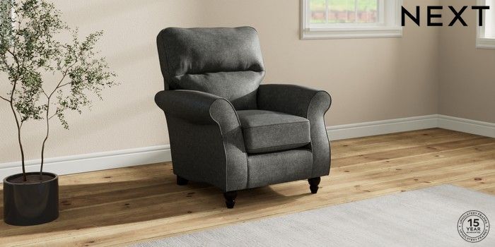6.12.1 Buy Ashford Highback Small Armchair Plush Chenille Dark Grey Low Turned - Dark from the Next UK online shop Click here to use our accessible website