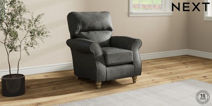 6.12.1 Buy Ashford Highback Small Armchair Plush Chenille Dark Grey Low Turned - Light from the Next UK online shop Click here to use our accessible website