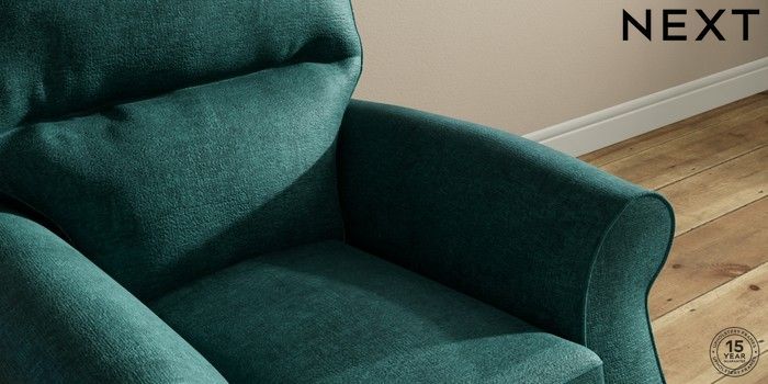 6.12.1 Buy Ashford Highback Small Armchair Plush Chenille Dark Teal Green Castor - Dark from the Next UK online shop Click here to use our accessible website