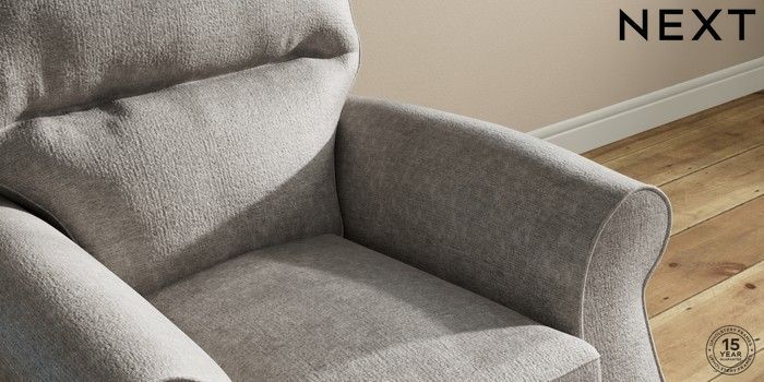 6.12.1 Buy Ashford Highback Small Armchair Plush Chenille Light Grey Modern Turned Metal Cap - Mid from the Next UK online shop Click here to use our accessible website