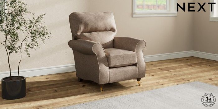 6.12.1 Buy Ashford Highback Small Armchair Plush Chenille Mid Natural Castor - Mid from the Next UK online shop Click here to use our accessible website