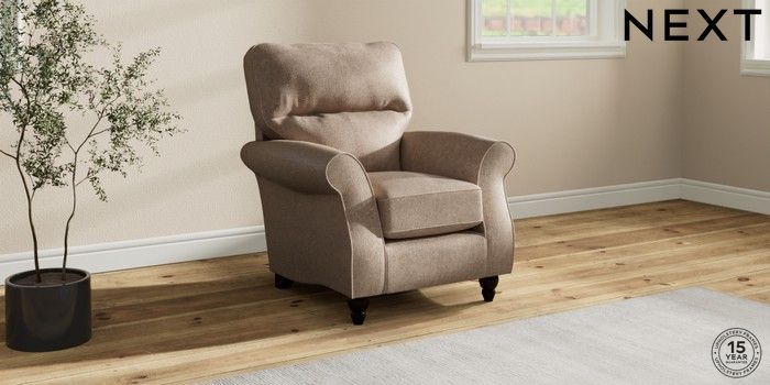 6.12.1 Buy Ashford Highback Small Armchair Plush Chenille Mid Natural Low Turned - Dark from the Next UK online shop Click here to use our accessible website