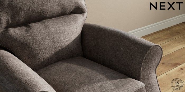 6.12.1 Buy Ashford Highback Small Armchair Plush Chenille Mink Brown Modern Turned Metal Cap - Mid from the Next UK online shop Click here to use our accessible website