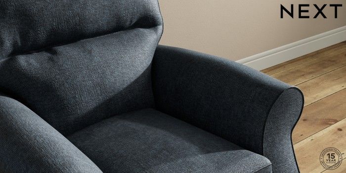 6.12.1 Buy Ashford Highback Small Armchair Plush Chenille Slate Blue Castor - Dark from the Next UK online shop Click here to use our accessible website