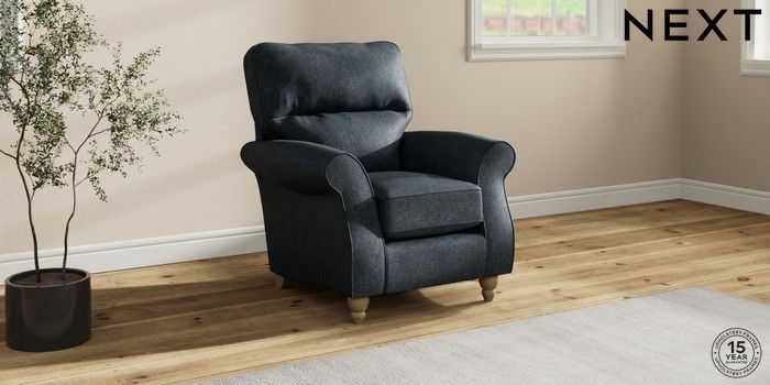 6.12.1 Buy Ashford Highback Small Armchair Plush Chenille Slate Blue Low Turned - Light from the Next UK online shop Click here to use our accessible website