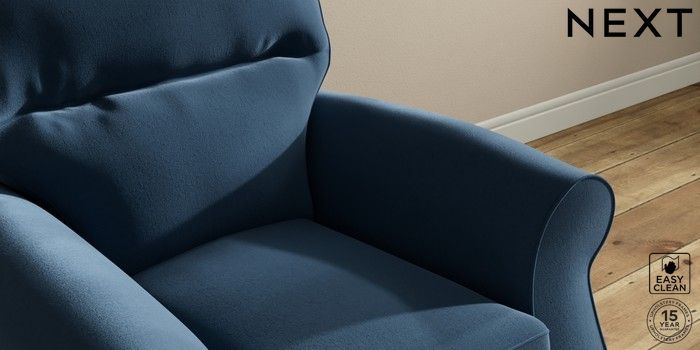 6.12.1 Buy Ashford Highback Small Armchair Plush Velvet Easy Clean Airforce Blue Castor - Dark from the Next UK online shop Click here to use our accessible website