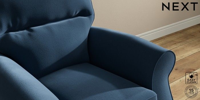 6.12.1 Buy Ashford Highback Small Armchair Plush Velvet Easy Clean Airforce Blue Low Turned - Light from the Next UK online shop Click here to use our accessible website