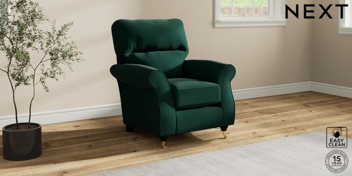 6.12.1 Buy Ashford Highback Small Armchair Plush Velvet Easy Clean Bottle Green Castor - Dark from the Next UK online shop Click here to use our accessible website