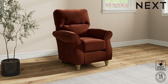 6.12.1 Buy Ashford Highback Small Armchair Plush Velvet Easy Clean Ginger Orange Low Turned - Light from the Next UK online shop Click here to use our accessible website