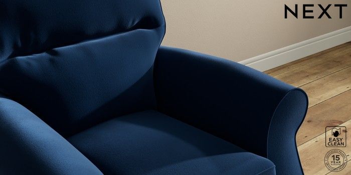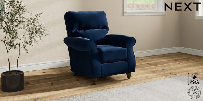 6.12.1 Buy Ashford Highback Small Armchair Plush Velvet Easy Clean Navy Blue Low Turned - Mid from the Next UK online shop Click here to use our accessible website