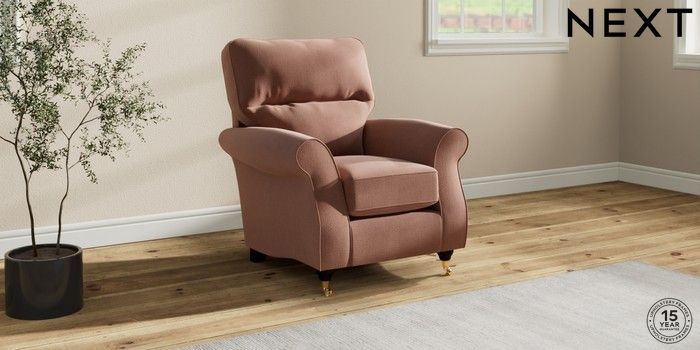6.12.1 Buy Ashford Highback Small Armchair Relaxed Linen Look Light Rust Brown Castor - Dark from the Next UK online shop Click here to use our accessible website