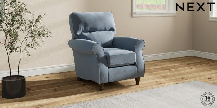 6.12.1 Buy Ashford Highback Small Armchair Relaxed Linen Look Mid Blue Low Turned - Mid from the Next UK online shop Click here to use our accessible website