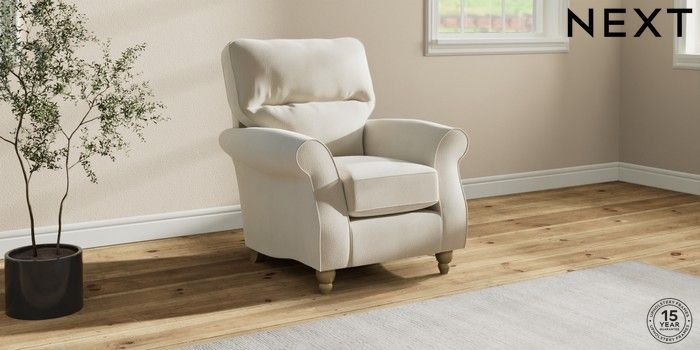 6.12.1 Buy Ashford Highback Small Armchair Relaxed Linen Look Oyster Low Turned - Light from the Next UK online shop Click here to use our accessible website