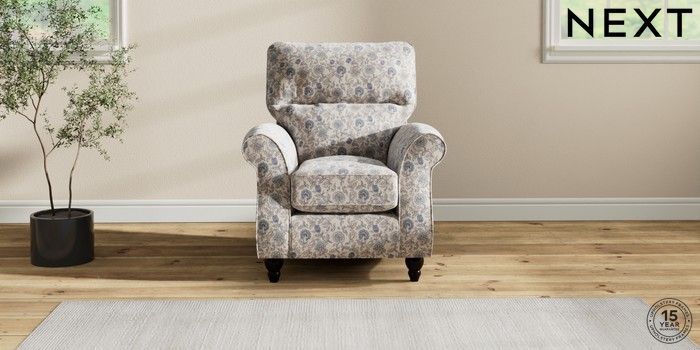 7.3.1 Buy Ashford Highback Small Armchair Relaxed Linen Look Print Woodblock Floral Blue Low Turned - Dark from the Next UK online shop Click here to use our accessible website