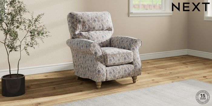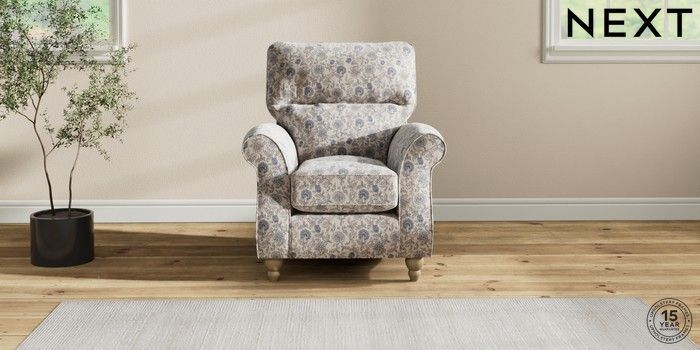 7.3.1 Buy Ashford Highback Small Armchair Relaxed Linen Look Print Woodblock Floral Blue Low Turned - Light from the Next UK online shop Click here to use our accessible website