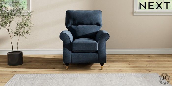 6.12.1 Buy Ashford Highback Small Armchair Ripple Chenille Dark Blue Castor - Dark from the Next UK online shop Click here to use our accessible website