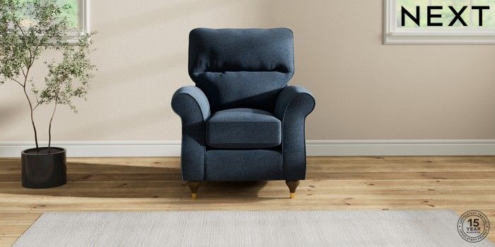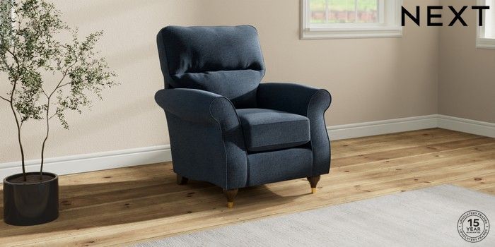 6.12.1 Buy Ashford Highback Small Armchair Ripple Chenille Dark Blue Modern Turned Metal Cap - Mid from the Next UK online shop Click here to use our accessible website