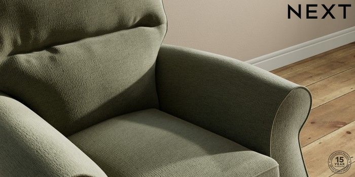 6.12.1 Buy Ashford Highback Small Armchair Ripple Chenille Mid Moss Green Modern Turned Metal Cap - Mid from the Next UK online shop Click here to use our accessible website