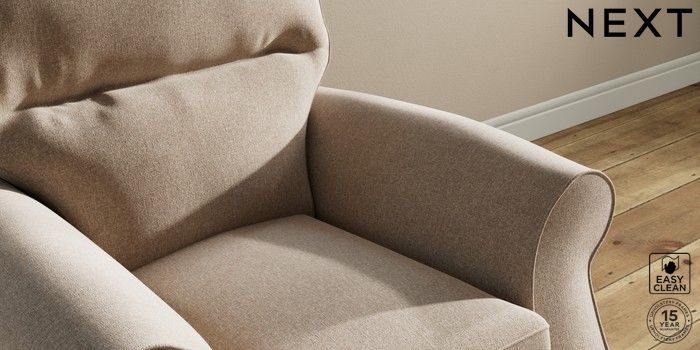 6.12.1 Buy Ashford Highback Small Armchair Tweedy Blend Easy Clean Light Dove Natural Modern Turned Metal Cap - Mid from the Next UK online shop Click here to use our accessible website