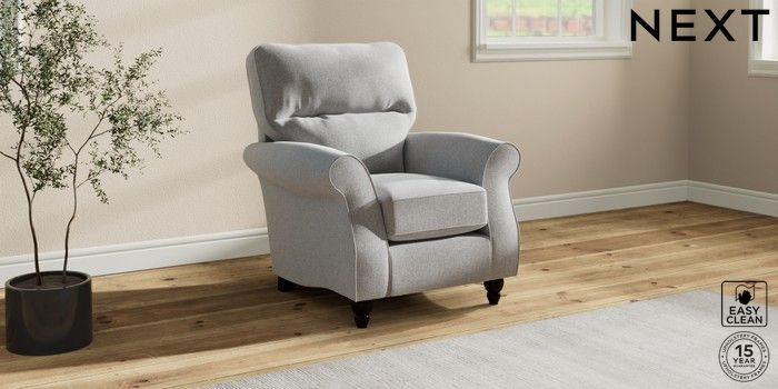 6.12.1 Buy Ashford Highback Small Armchair Tweedy Blend Easy Clean Light Silver Grey Low Turned - Dark from the Next UK online shop Click here to use our accessible website