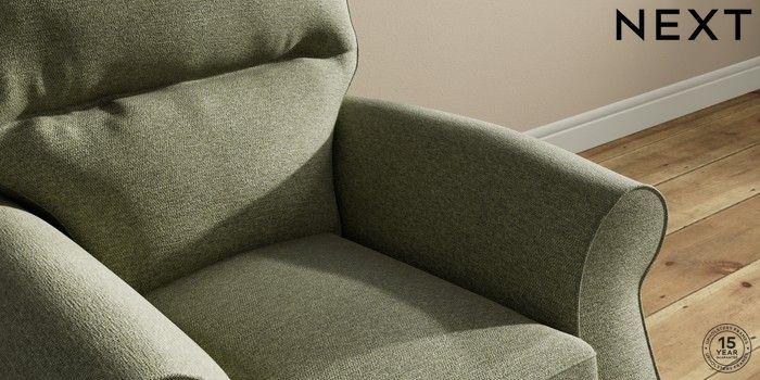 6.12.1 Buy Ashford Highback Small Armchair Tweedy Chenille Mid Moss Green Modern Turned Metal Cap - Mid from the Next UK online shop Click here to use our accessible website