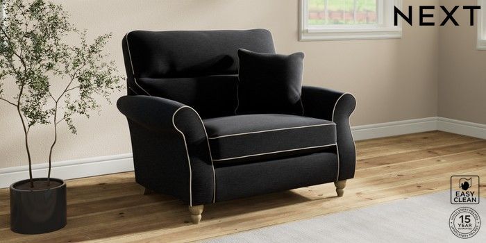 7.3.1 Buy Ashford Highback Snuggle Fine Chenille with Contrast Black and Oyster Low Turned - Light from the Next UK online shop Click here to use our accessible website