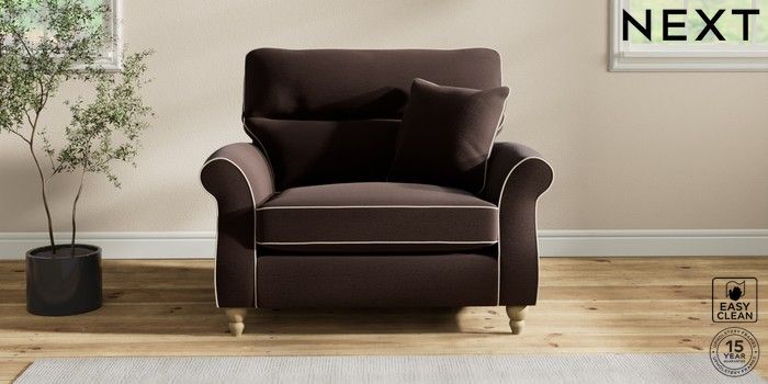 7.3.1 Buy Ashford Highback Snuggle Fine Chenille with Contrast Chocolate Brown and Oyster Low Turned - Light from the Next UK online shop Click here to use our accessible website