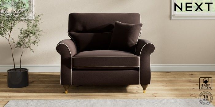 7.3.1 Buy Ashford Highback Snuggle Fine Chenille with Contrast Chocolate Brown and Oyster Modern Turned Metal Cap - Mid from the Next UK online shop Click here to use our accessible website