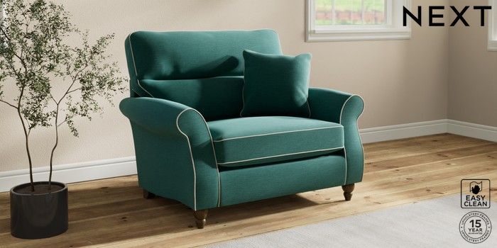 7.3.1 Buy Ashford Highback Snuggle Fine Chenille with Contrast Dark Juniper Green and Oyster Low Turned - Mid from the Next UK online shop Click here to use our accessible website