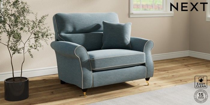 7.3.1 Buy Ashford Highback Snuggle Fine Chenille with Contrast Mid Blue and Oyster Castor - Dark from the Next UK online shop Click here to use our accessible website