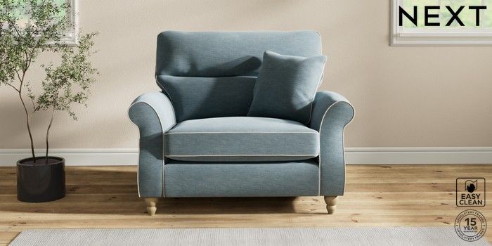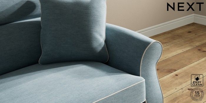 7.3.1 Buy Ashford Highback Snuggle Fine Chenille with Contrast Mid Blue and Oyster Low Turned - Light from the Next UK online shop Click here to use our accessible website