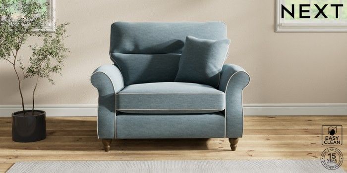 7.3.1 Buy Ashford Highback Snuggle Fine Chenille with Contrast Mid Blue and Oyster Low Turned - Mid from the Next UK online shop Click here to use our accessible website