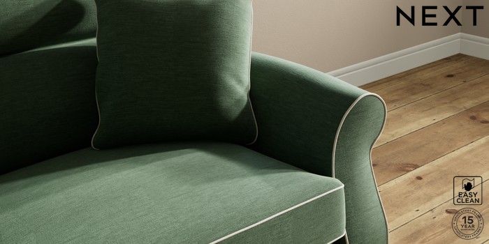 7.3.1 Buy Ashford Highback Snuggle Fine Chenille with Contrast Mid Khaki Green and Oyster Modern Turned Metal Cap - Mid from the Next UK online shop Click here to use our accessible website