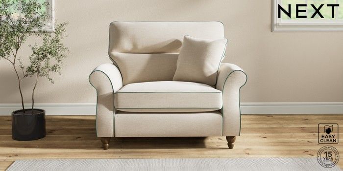 7.3.1 Buy Ashford Highback Snuggle Fine Chenille with Contrast Oyster and Dark Juniper Green Low Turned - Mid from the Next UK online shop Click here to use our accessible website